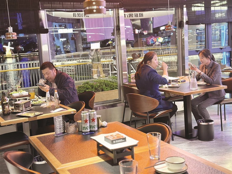 火锅的旺季在天气冷些的时候,烧烤的旺季在天气热的时候,烧烤店和火锅店并排挨着同时开启,又成了餐饮口味上的互补,对一些老客来说,在拿不定主意吃什么的时候,有了更多的选择。落座火锅店,也不耽误吃烧烤,依旧可以去隔壁叫一些烤串送过来。如此,对众多食客来说,也算是惬意的享受。
