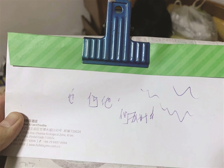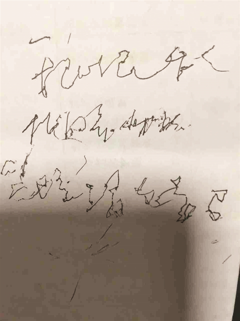 今年中秋,momo的爷爷贲门癌复发,在睡梦中离世。momo在外地工作,得知爷爷离世的消息,立即赶回老家。途中,弟弟发来一张图片,是一张纸上写着两个认不清的字,能看出写字的人没什么力气,字写得七扭八歪。“姐姐,这是爷爷今天下午三点多(离世前2小时)写的字。”弟弟说,“就在下午,我到爷爷跟前,爷爷嘴中总是说什么话,我和奶奶都听不清。”