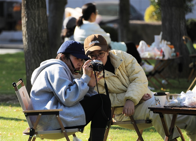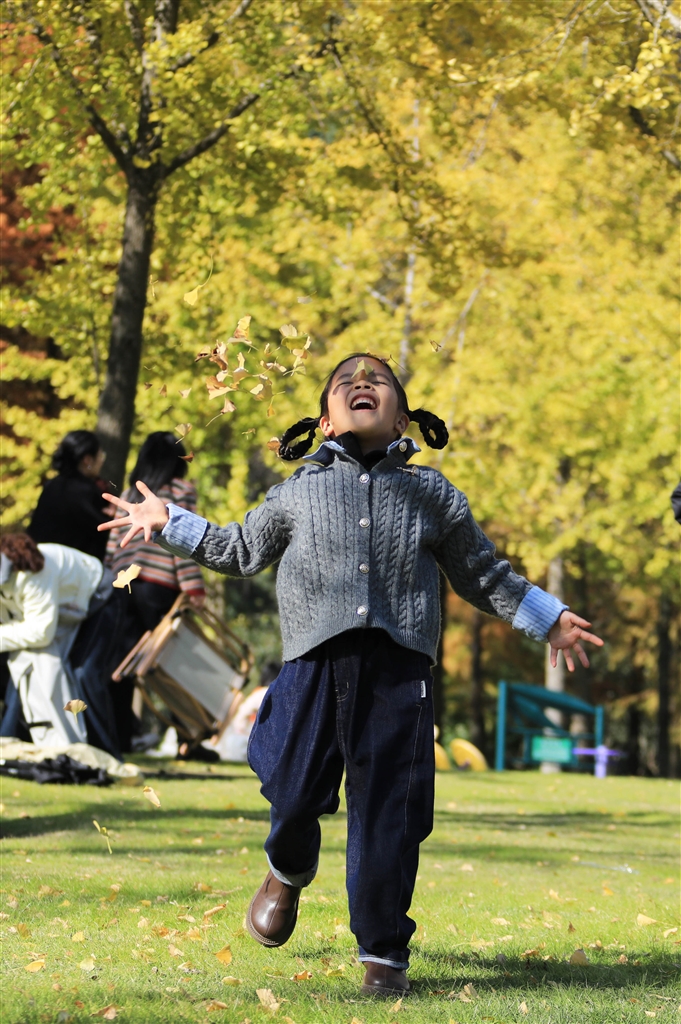11月30日,普陀区东港武岭湿地公园银杏林迎来一年中最佳观赏期,吸引不少游人观赏休闲。