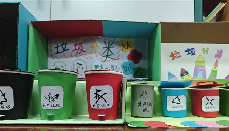 近日,普陀舟渔学校开展了以“‘圾’时分类 绿色‘童’行”为主题的主题教育活动。各班学生通过主题班会,认识垃圾分类标志与细分表,并利用各种包装盒、纸杯、易拉罐、纸巾等废旧物品,通过剪、贴、涂等多种方式,制作“环保艺术品”。