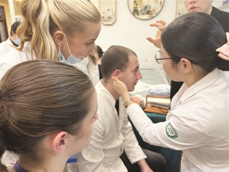 一群塞尔维亚护理专业师生走进市中医院感受中医神奇