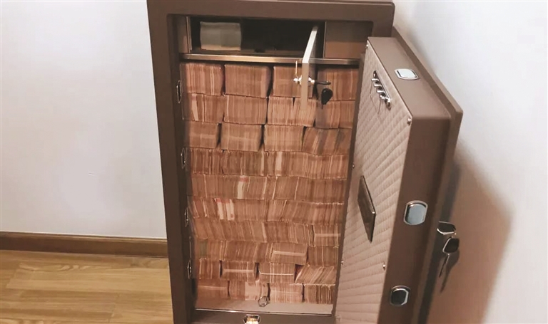 专案组成员介绍,他们在何某华家中的鸡窝里,找到了何某华妻子桂某藏匿的6公斤金条。梁某富将保险柜藏在自己的出租屋里,害怕被盗,专门安了一个摄像头对着保险柜,通过手机随时监控。民警在这个保险柜内收缴了1700多万元人民币。