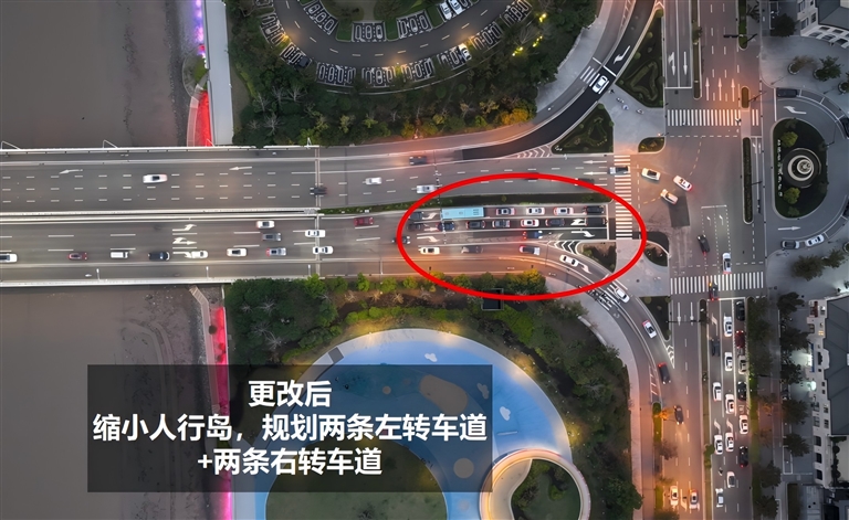 目前,舟山交警通过对新城大桥南口改造、增加右转车道,有效破解晚高峰进长峙岛右转拥堵的问题,晚高峰提早半小时“收工”。