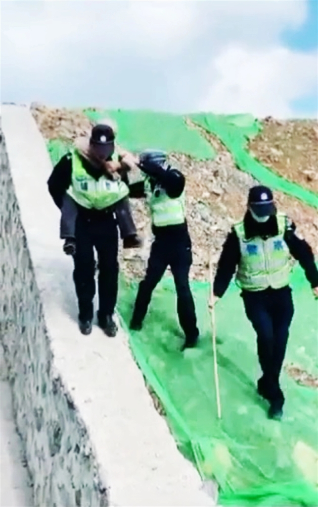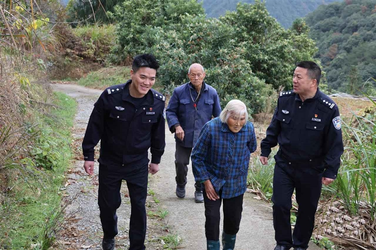 民警们轮流背起老人,一路翻山越岭,徒步走到对面村子买到了药,又将老人安全送回家。