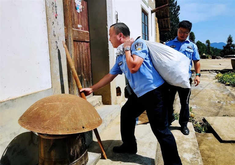 “现在这条路都荒掉了,有他们帮忙带,不怎么走了。”邵奶奶一边招呼大家坐,一边说每个季度七大队的民警们都会来一次,提前问有什么需要带的,“有一次他们来,还帮我们打了山核桃。”