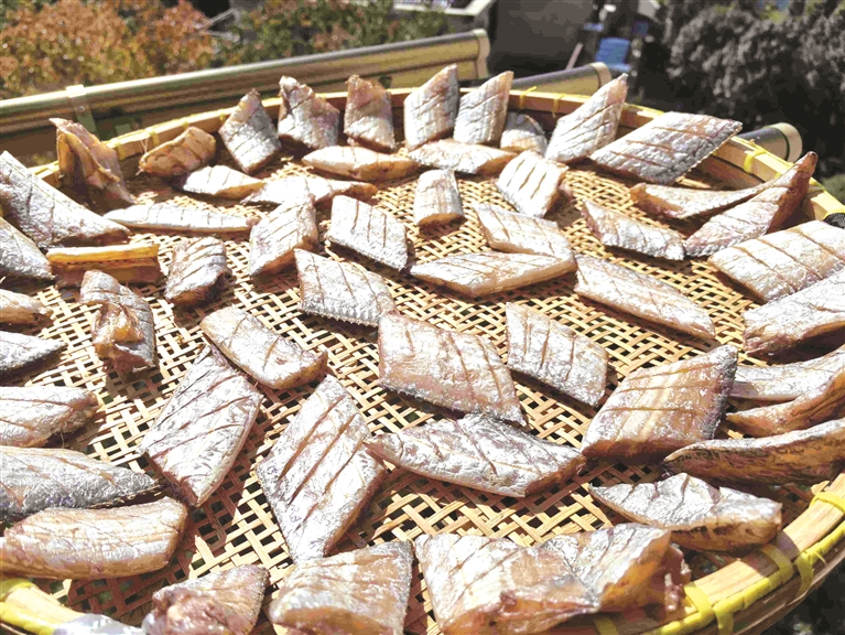 上周岛城阳光大好,一看要起西北风,翁女士忙将晒鱼鲞提上日程,“我特地请了一天假,就为了赶在周五把鱼鲞晒好,周末好寄给女儿。”