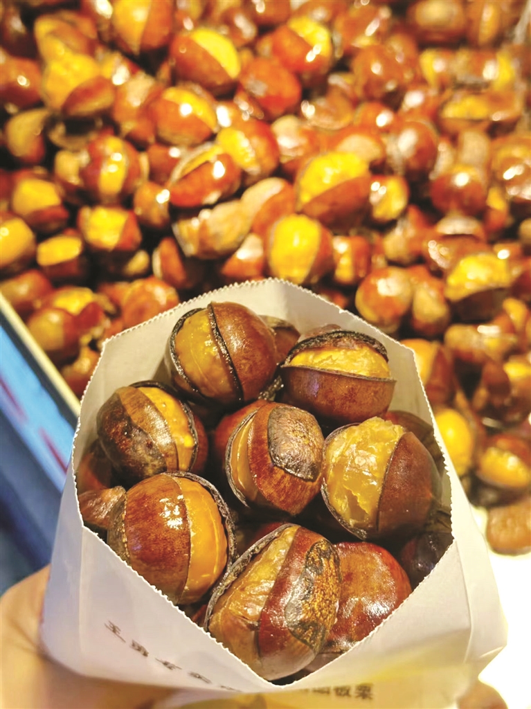 “天气一冷,就想吃热乎乎的糖炒栗子了,每年都会到这家店买,香甜软糯,我和父母都爱吃。”市民小许手捧一袋热气腾腾的栗子笑呵呵地说。他每次都挑上午来买,因为每天下午至天黑期间来购买的人比较多。