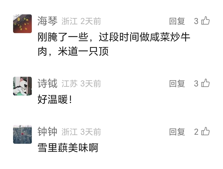 人多力量大,你购一点他购一点,就能为滞销农户帮上大忙。沈家门居民廖女士、台州银行朱家尖社区支行等热心群体为朱家尖这位农户买走了1000余公斤雪里蕻;就在前几天,舟山公交第一分公司10余名员工来到定海双桥石礁村覃尚喜菜地收割并购买了250余公斤蔬菜……岛城这样的热心人不少,他们出力出钱,切实帮助农户解决生产收购难题。同时,这样的爱心涌动,体现了守望相助的城市温度。