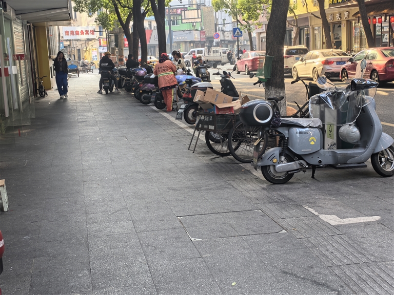沈家门街道同济路上的盲道被电动自行车、三轮车占道