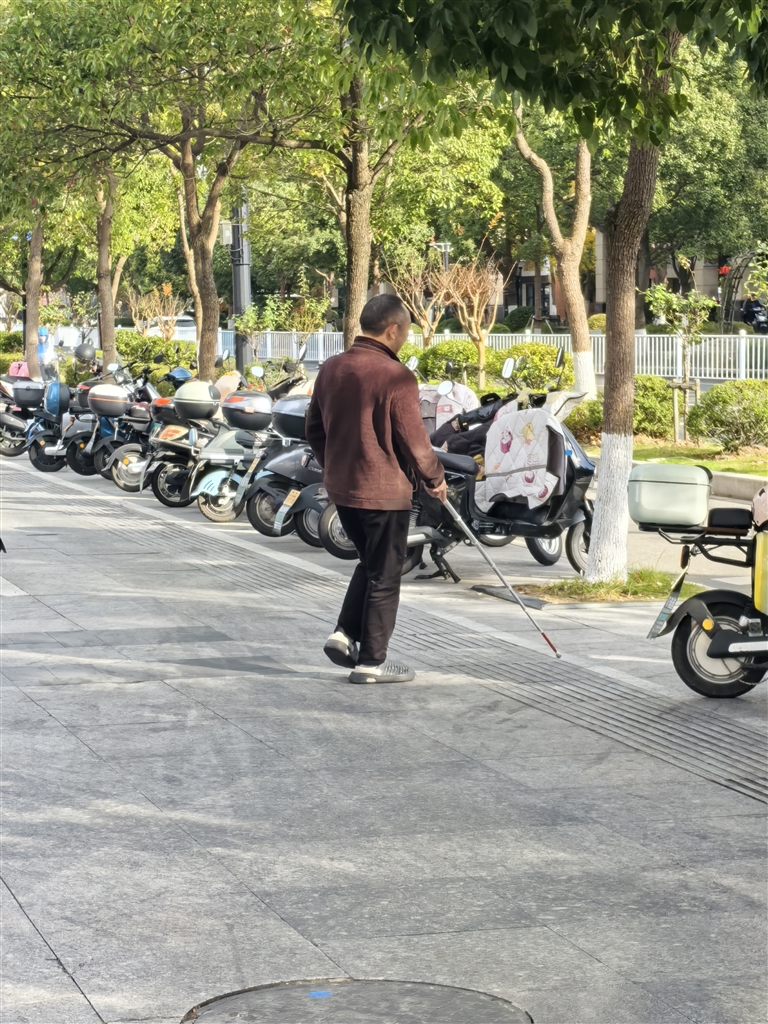12月9日上午9时,记者在海城广场遇到了一位拄着盲杖的视障人士,但他并未走在盲道上。这位视障人士叫毛海,是附近一家盲人按摩店的技师,他说:“我平常出行都不走盲道,走盲道反而不方便,走几步就撞到东西,还是用盲杖在前面探路更方便。”