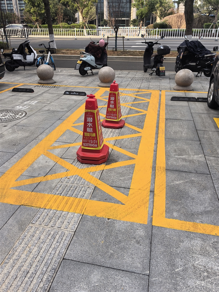 沈家门街道小蒲湾社区爱尚水果店外红绿灯处的盲道绕圈