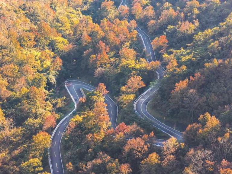 这里的枫树品种繁多,夹杂在各种树木之间呈现出大自然最绚丽的色彩,从明亮的橙色、深沉的红色,到充满生命力的深绿色,都映进了清澈见底的紫微潭,构成了一幅五彩斑斓的画卷。游客们漫步于山间小径,欣赏壮丽的山景,幽静的美尽收眼底。