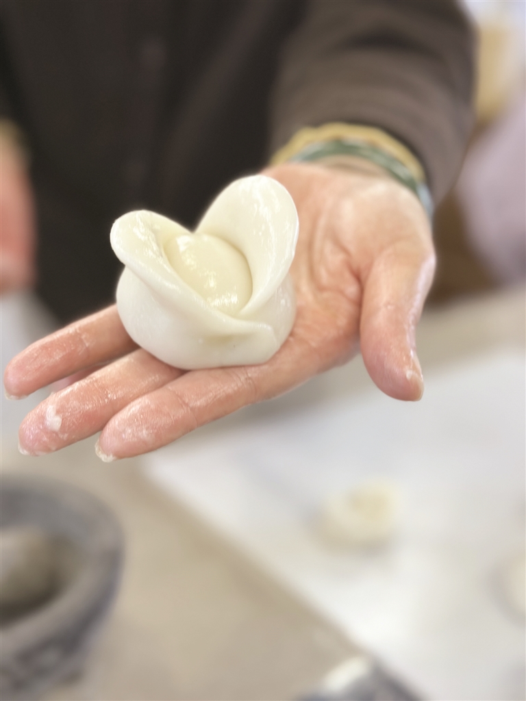 做年糕的下一步骤,则在案板上揉,揉到光滑了,便可以用模具做成自己喜欢的形状,也可以捏出想要的造型。