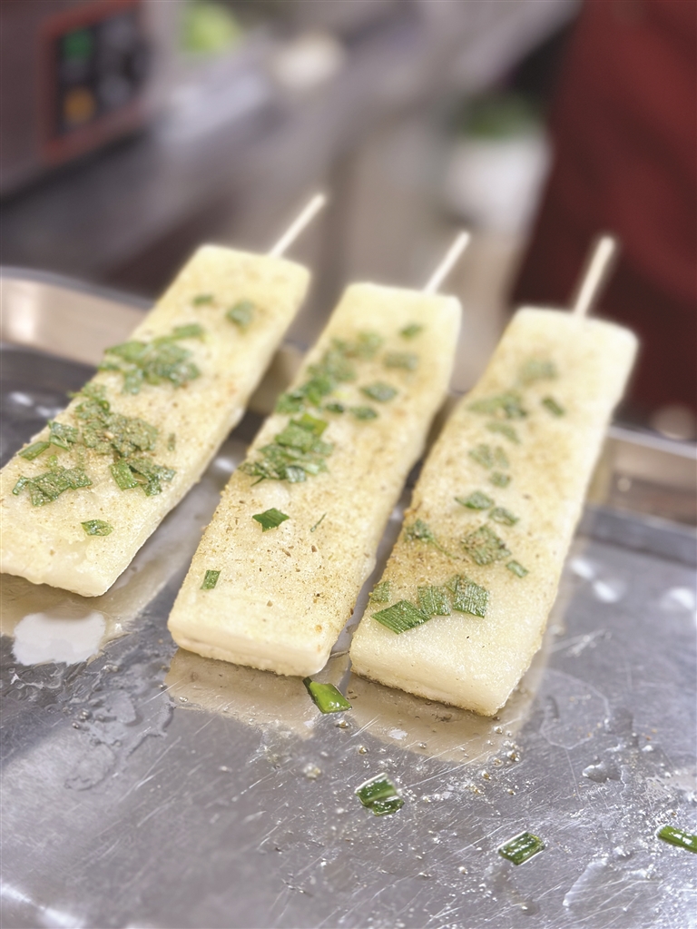 外皮薄脆、内里软糯的现煎年糕,周末可以卖上一千根
