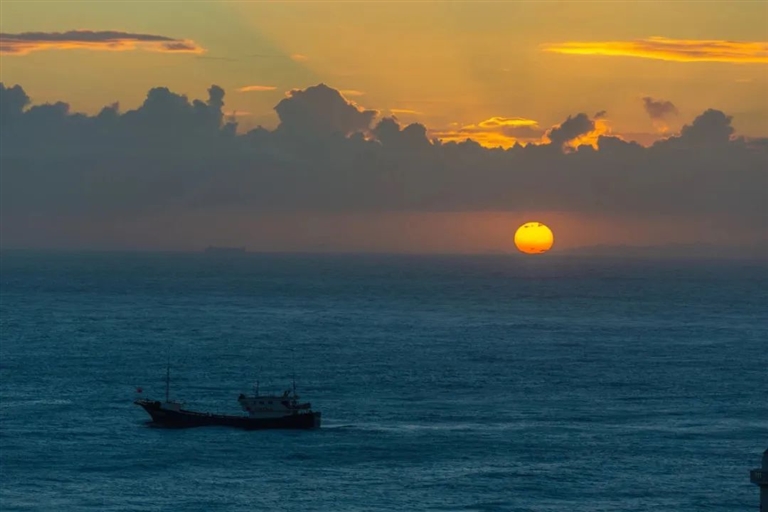 伫立在冬天的海岸边,看火红的太阳在洋面上缓缓爬升,整片海湾在徐徐金辉中被暖阳唤醒。聆听海的低语,感受冬的温柔。