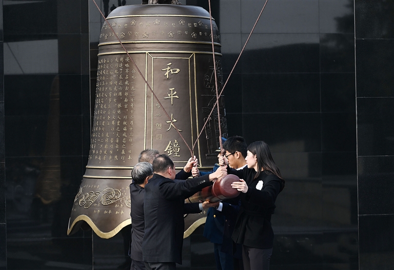 12月13日,社会各界代表撞响和平大钟。