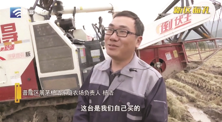 这些年,杨浩一家陆续承包了300多亩水稻,一跃成为当地的种粮大户。在普陀区农业农村局统一组织下,杨浩和几位年轻的农户一起去过外地学习先进的操作技术,并购入了两台设备。现在,除了料理自家的一亩三分地,他还经常帮这一带的同行们收割、翻耕,只要开上农机,他总是动力满满、乐此不疲。