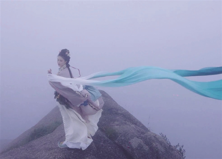 拍“飞天仙女”时,为了一个腾云驾雾的场景,她和团队小伙伴背着摄影器材去爬很陡的山,陡到“掉下去,尸首都找不着那一种”。她有些偏执,脑子里想到“最美好的画面”,就一定要拍到它。埋头冲时,跟在身后的摄像瞥一眼旁边的深渊,不敢动了,手抖着音颤着喊,“九月,你——回——来——吧——”