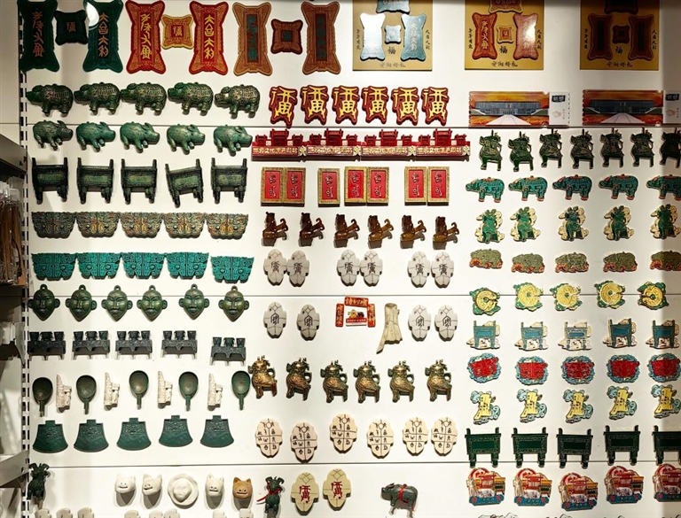 河南省安阳市殷墟宫殿宗庙遗址文创店内陈列的各式各样的冰箱贴