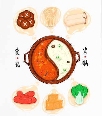 不久,锅底便端了上来。友人喜清淡,我喜欢加点辣。我们各自点了锅底。清汤与辣汤各据一方,清汤平静如镜,点缀着几颗红枣、枸杞,犹如湖面上的小红帆;辣汤则犹如火焰般热烈,辣椒和花椒在其中跳跃,散发出诱人的辣香。随着温度上升,汤汁开始轻轻翻滚,热气缓缓升腾,交织成一场无声的舞蹈。