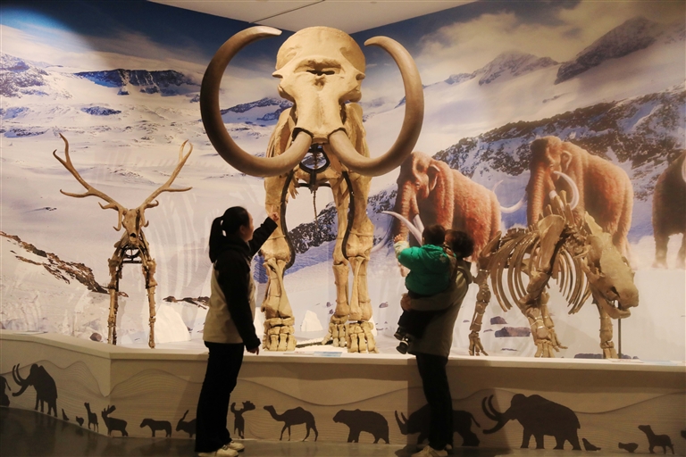 昨天,“伊通河畔——冰河巨兽的乐园”长春博物馆古生物化石展在舟山博物馆开展。本次展览通过近80件珍贵展品,引领观众走进猛犸象、披毛犀、大角鹿等古生物的远古世界,揭示它们如何在第四纪冰雪覆盖的伊通河流域生存繁衍。本次展览将持续到2025年2月16日。记者 陈永建 摄