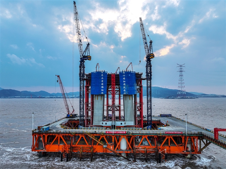 甬舟铁路西堠门公铁两用大桥是甬舟铁路的控制性工程。甬舟铁路西起宁波东站,经宁波市鄞州区、北仑区,跨越金塘水道、西堠门水道、桃夭门及富翅门水道至舟山本岛,终于舟山白泉,线路运营长度77公里,建成后将补齐浙江“市市通高铁”最后一块“拼图”。