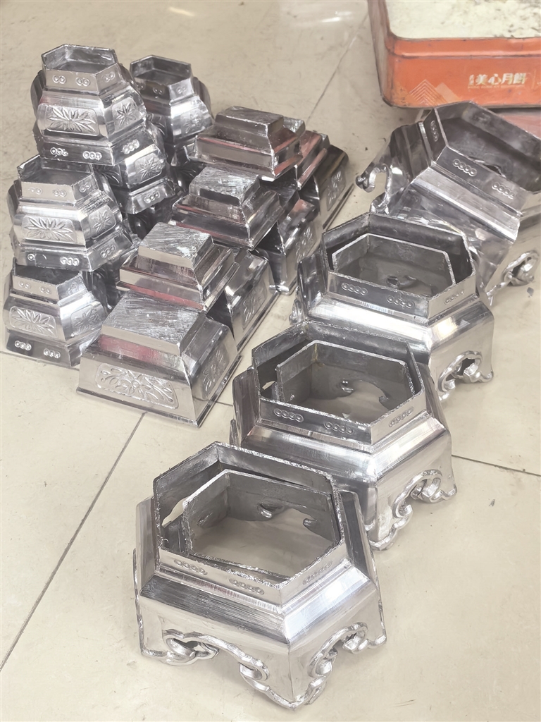 毛文定打磨的锡器,主要供顾客用于红白事、家族祭祀等。“结婚用的烛台等,做一个需要四个小时,做两把酒壶需要一上午,都挺费时间。”毛文定介绍,至于价格,不同的料,价钱也不同。
