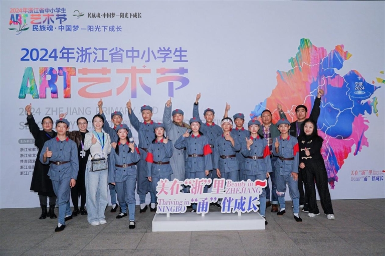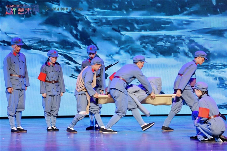 近日,2024年浙江省中小学生艺术节闭幕式在宁波举行。在报送的400多个表演节目中,定海区白泉初级中学课本剧《长征》代表舟山市获得戏剧朗诵类节目一等奖,并入选现场展演。