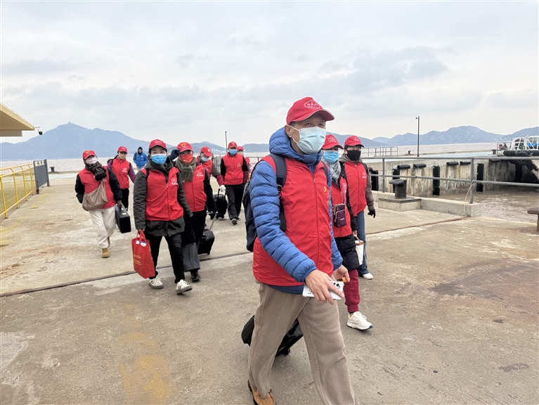 不管是高温酷热的夏天,还是冷风嗖嗖的冬天,志愿者们下海岛的脚步,从未停歇。2020年,市歌舞爱好者协会每月到岱山县大长涂岛开展为老服务,大家从定海出发需要3个半小时,乘3次车、2次船才能到达服务点。2021年~2024年,市歌舞爱好者协会承接了市民政局“关爱偏远海岛老人”公益创投项目,每月去白沙岛服务。住在定海的队友需要早上7时从定海出发,赶到蜈蚣峙码头集合,坐船35分钟到达白沙岛;下午志愿服务活动结束回到蜈蚣峙码头,大家简单道一声“再见”,往往到家时已经下午5时,也即连续10个小时在外奔波。