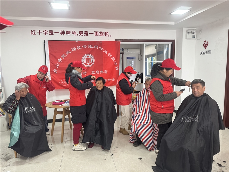 老人在剪完后照着镜子,摸着鬓角的头发,对5位理发志愿者的技术,连声点赞。其实,这理发手艺,志愿者们是专门学过的。志愿者邱卫红退休后曾到杭州参加美容美发培训,她说,“一开始想为家人服务,没想到这门手艺,有一天也可以服务到别人,变得更有意义了。”另一位志愿者蒋慧芬今年67岁,理发手艺还是40多年前学的,“我是一名退休教师,那时我十七八岁,在双桥农村教书,孩子们剪一次头发要1毛多钱,家长们舍不得,我就自学了理发,也能给学生家庭帮点忙。没想到,现在退休了做志愿者,这门手艺又用上了。”