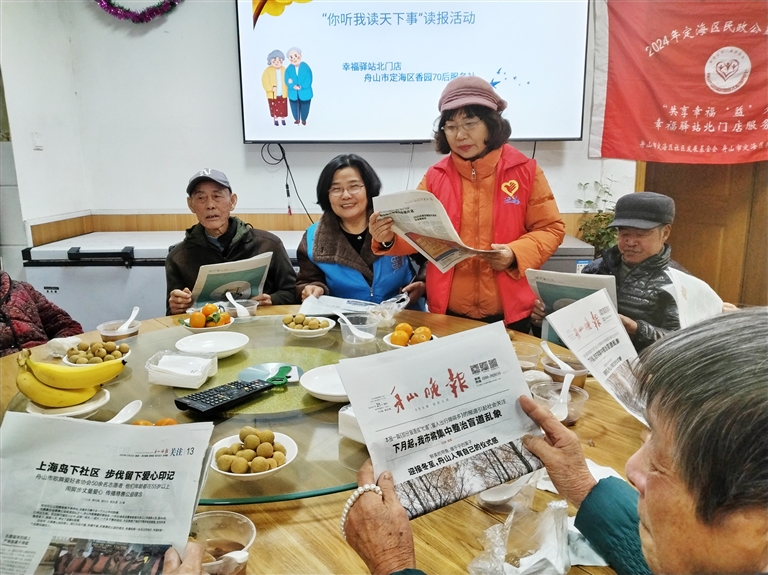 幸福食堂定海北门店有报纸陪读服务,有老人说