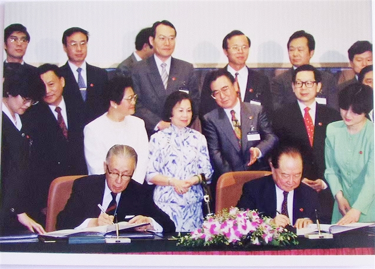 照片中,那时的邱进益中年模样,一头黑发,意气风发,站在签字席的后排,见证着两岸关系“破冰”的历史性时刻。