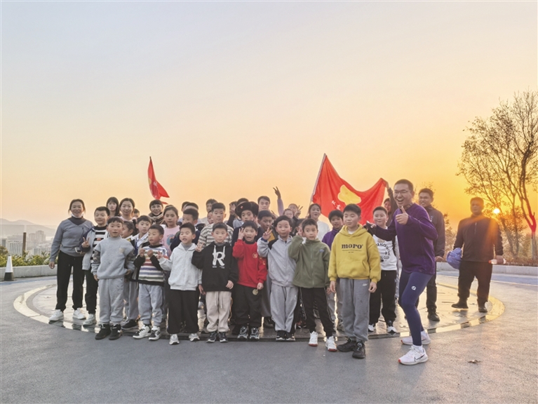 “别犹豫,跑起来!”檀枫小学教育集团城东校区教师张佳锋在校内组了一个“城东星跑团”,每周日下午4点他带着学生和家长奔跑在东海云廊之上。