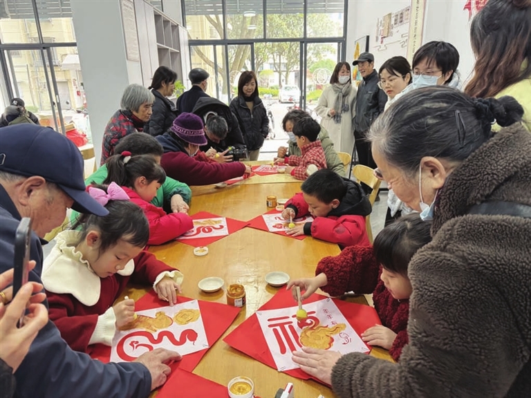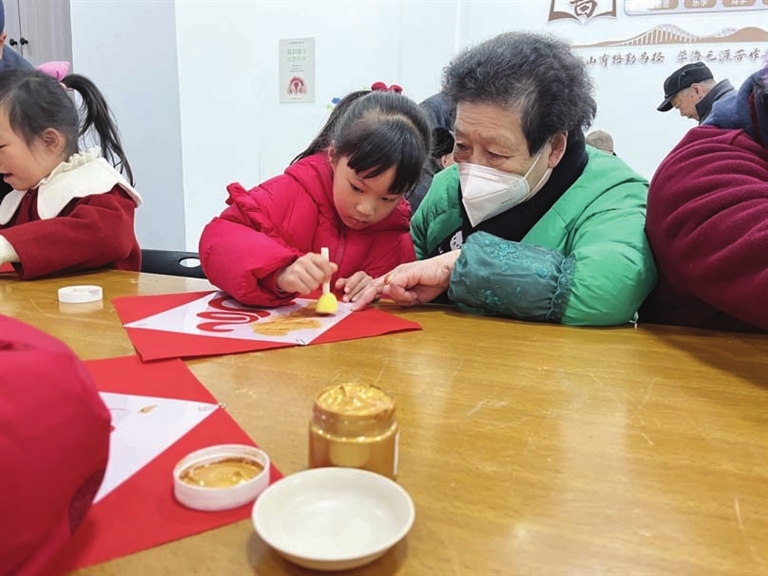昨天下午,定海区檀树社区幸福窝哩,孩子和老人们一起体验“非遗”蛇年福字拓印。一个个“福”字跃然纸上,寄予了大家对新年的美好期盼。随后,孩子们带着“福”字前往辖区孤寡老人家中送“福”上门,传递温暖。