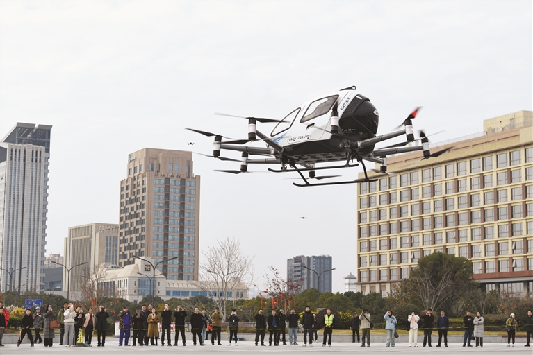 当天下午,市有关部门在新城举行无人驾驶载人航空器试飞。此次选用的EH216-S无人驾驶载人航空器获得了由民航局颁发的型号合格证(TC)、生产许可证(PC)、标准适航证(AC),为全球首款且目前唯一的适航领域“三证齐全”的eVTOL(电动垂直起降飞行器)航空器。飞行中,EH216-S无人驾驶载人航空器向西经过海湾公园、樱花公园、新城大桥等,随后返航。