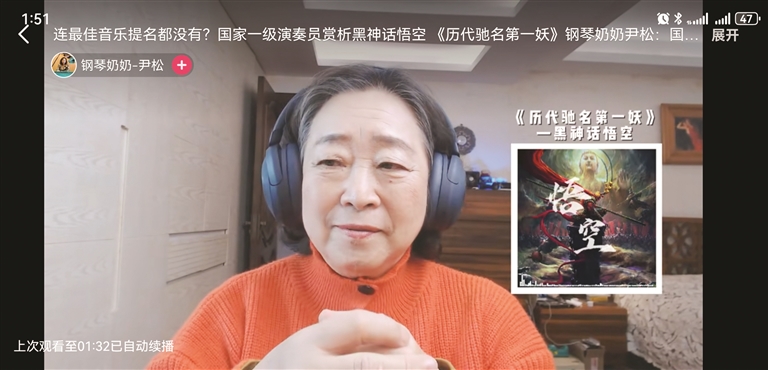 “钢琴奶奶”尹松因短视频赏析《黑神话:悟空》音乐,粉丝大增