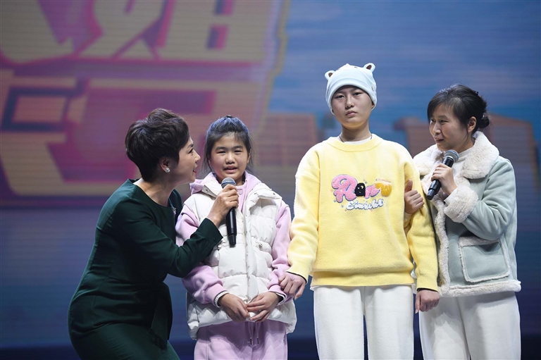 新居民王颖奇的两个女儿(中)去年8月不幸遭遇车祸,在社会各界爱心力量的帮助下,姐妹俩已逐步好转 记者 姚凯乐 摄