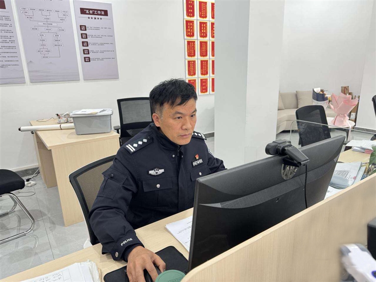 眼前的民警明显沧桑了不少,两鬓新添白发,额头多了皱纹,皮肤变得黝黑。