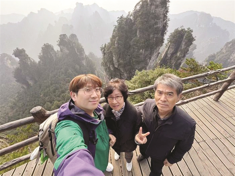 飞机凌晨落地,但一家人仍兴致勃勃地以一顿川菜开启旅途:水煮肉片的麻辣鲜香、“老妈蹄花”的肥糯软嫩,都留下美好的味蕾记忆。朴大一还带他们去四川毕棚沟、峨眉山,湖南张家界等地游玩。