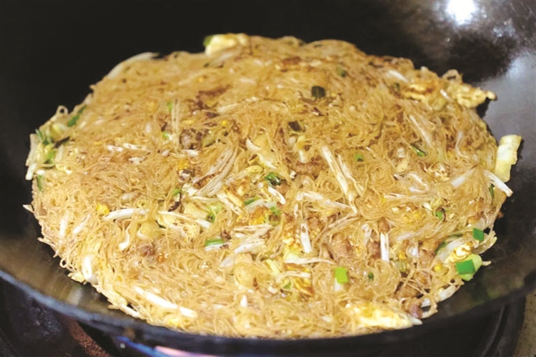 荷外面店的炒面一出锅,鲜香而干爽,意犹未尽。炒米面表面有着金黄香酥的米面锅巴,吃起来更是根根有味。