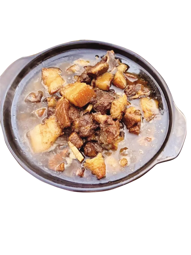 “小时候,家里吃的‘年猪饭’更经济实在,弄一个大暖锅,腌蔬菜打底,上面猪肉放一层,再上面猪血放一层……把食材一起煮,煮到‘咕咕’冒泡,煮到肉香、菜香闻着就馋得人口水直流,就成了。”程先生说,吃“年猪饭”是他小时候最幸福的时光。