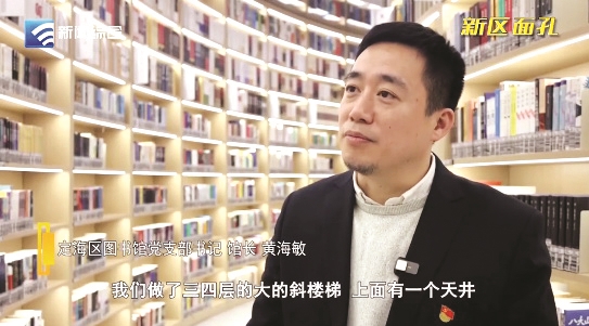 黄海敏利用自己美术专业的特长,让新馆兼具阅读品质和美学体验。“我们做了三四层的大的斜楼梯,上面有一个天井,这样户外采光可以直接进来;最好的位置,我们安排了‘红色领航书柜’;亲子的阅读小屋就像童话一样;包括我们那些能够看到海的区域,都是考虑到如何能够更好地更多地安排一些阅读的坐席。”