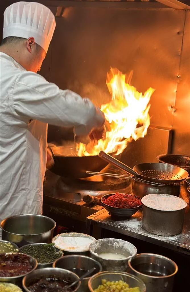 当年的他不会烹饪,也不知道怎么经营餐馆,只是爱吃川菜。永春川菜初开起来,只是40多平方米的一间店面。他请了川菜师傅,自己又当服务员端盆子,又要在后厨洗碗,什么事儿都要自己来。