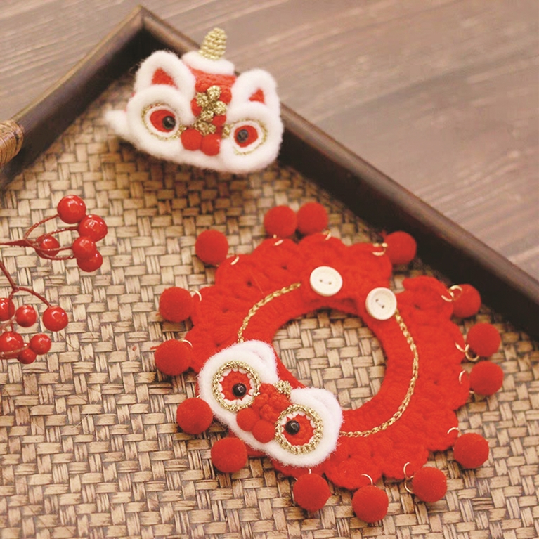 岑女士发现,现在商家们推出的宠物饰品种类繁多,在春节前最热销的要属国风饰品。“我看到一些长命锁、平安扣造型的项圈,样子和金店里卖的首饰很像,但大多是镀金或者合金的。看上去很富贵。再就是红色的宠物衣服和针织围脖,我看到一顶醒狮造型的小帽子很好看。”
