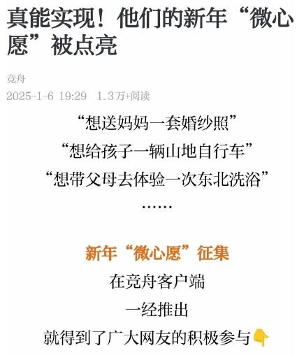 近日,市新闻传媒中心 “竞舟帮帮团” 联合市慈善总会送出新年大礼包:点亮“微心愿”,实现“微梦想”(“竞舟”客户端1月6日报道)。