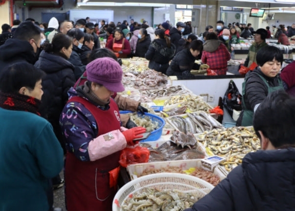 临近春节,不少市民提前备齐了各类海鲜和干货,海鲜市场一幅热闹景象。