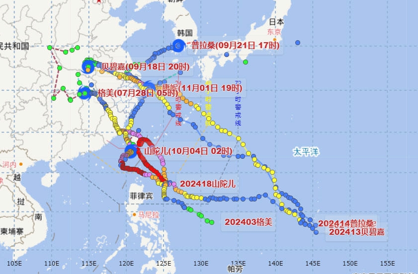 “格美”“贝碧嘉”“普拉桑”“山陀儿”“康妮”台风路径图
