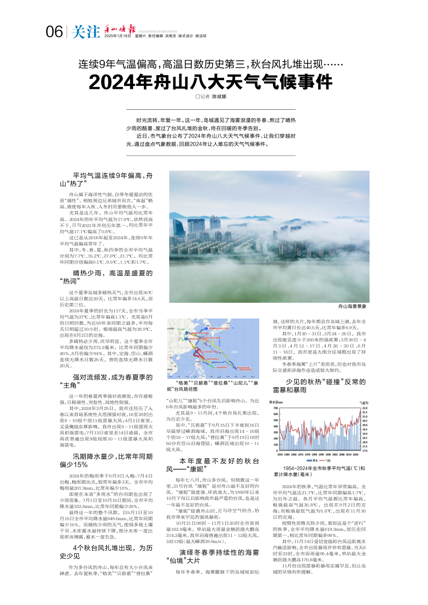 2024年舟山八大天气气候事件