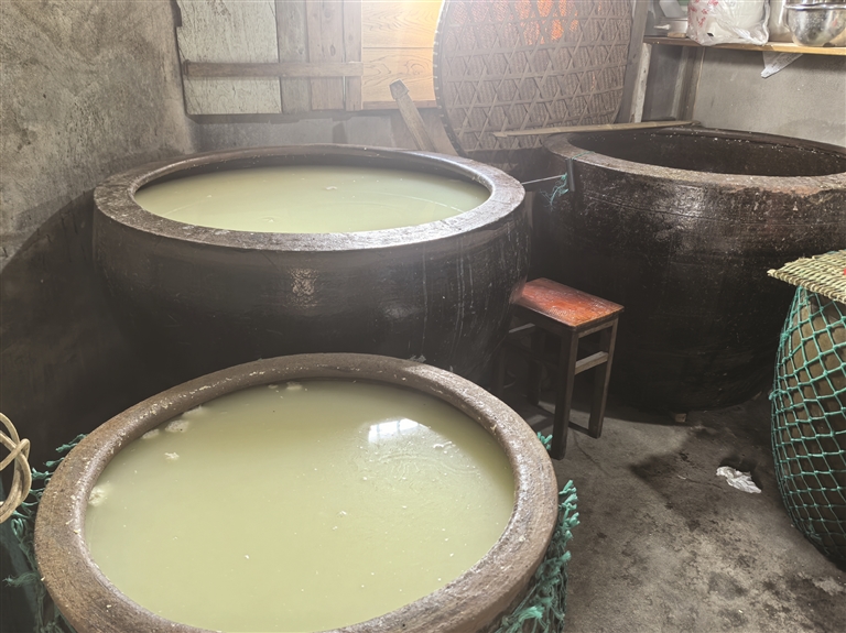 “发酵需要24小时,其间还要不停关注酒缸温度的变化,我就得时不时用手摸一摸缸壁,确保温度适宜。”张素文说,接下来就是发酵好后冷却,然后分次注入山泉水,静静等待40~45天,就能开缸饮用了。