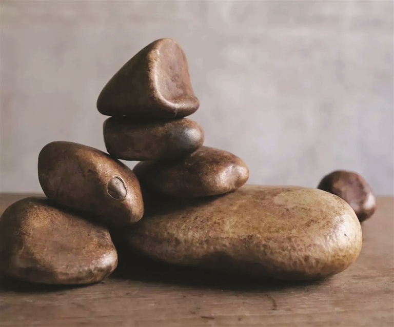 石头上包了一层皮,可作书镇,也有雅趣